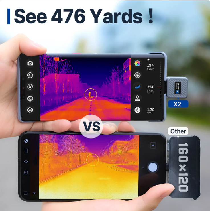 X2 Thermal Night Vision Monocular for Android, See 870m, Thermal Imager with 50Hz, 15X Zoom, Thermal Scope for Hunting and Wilderness Rescue.